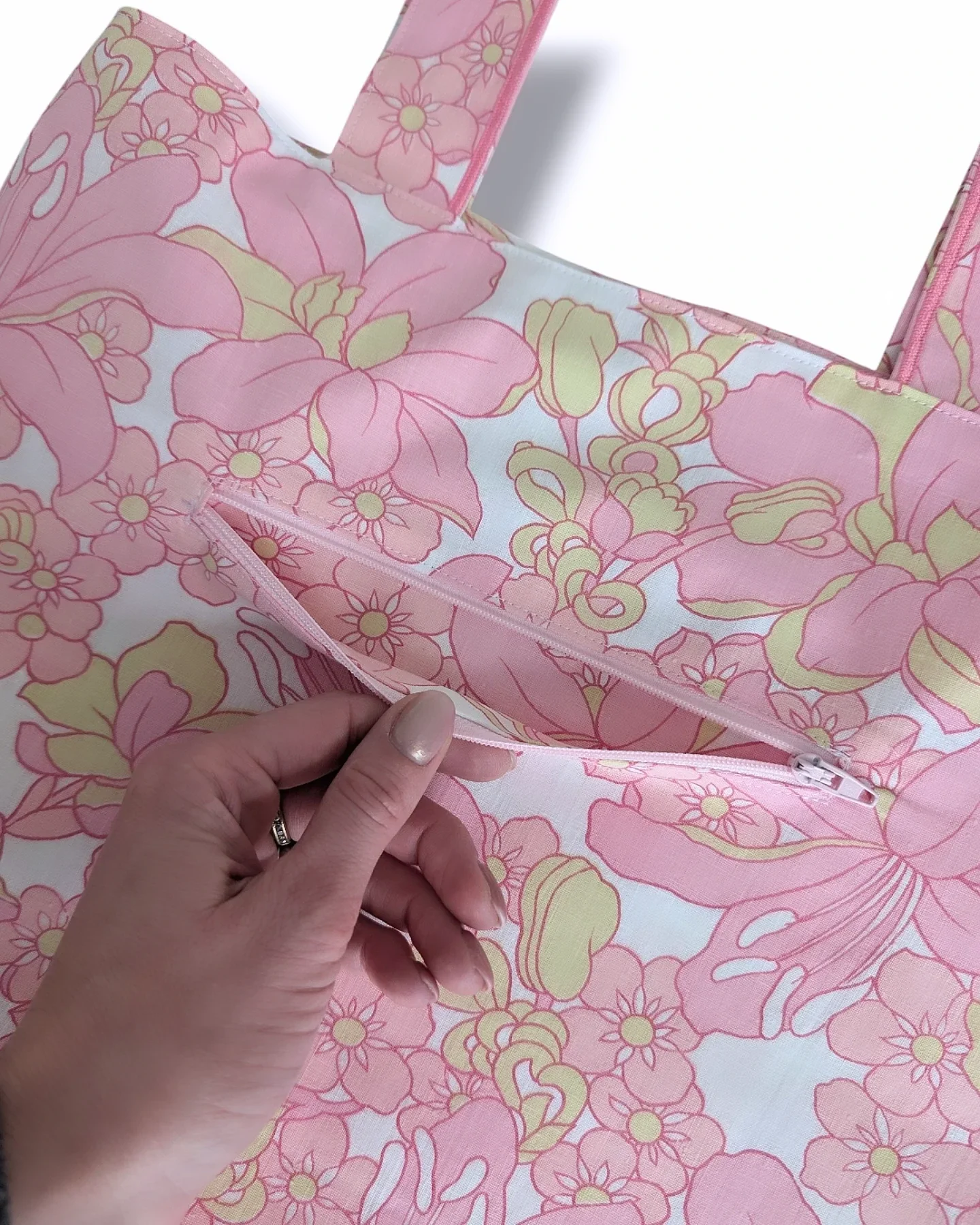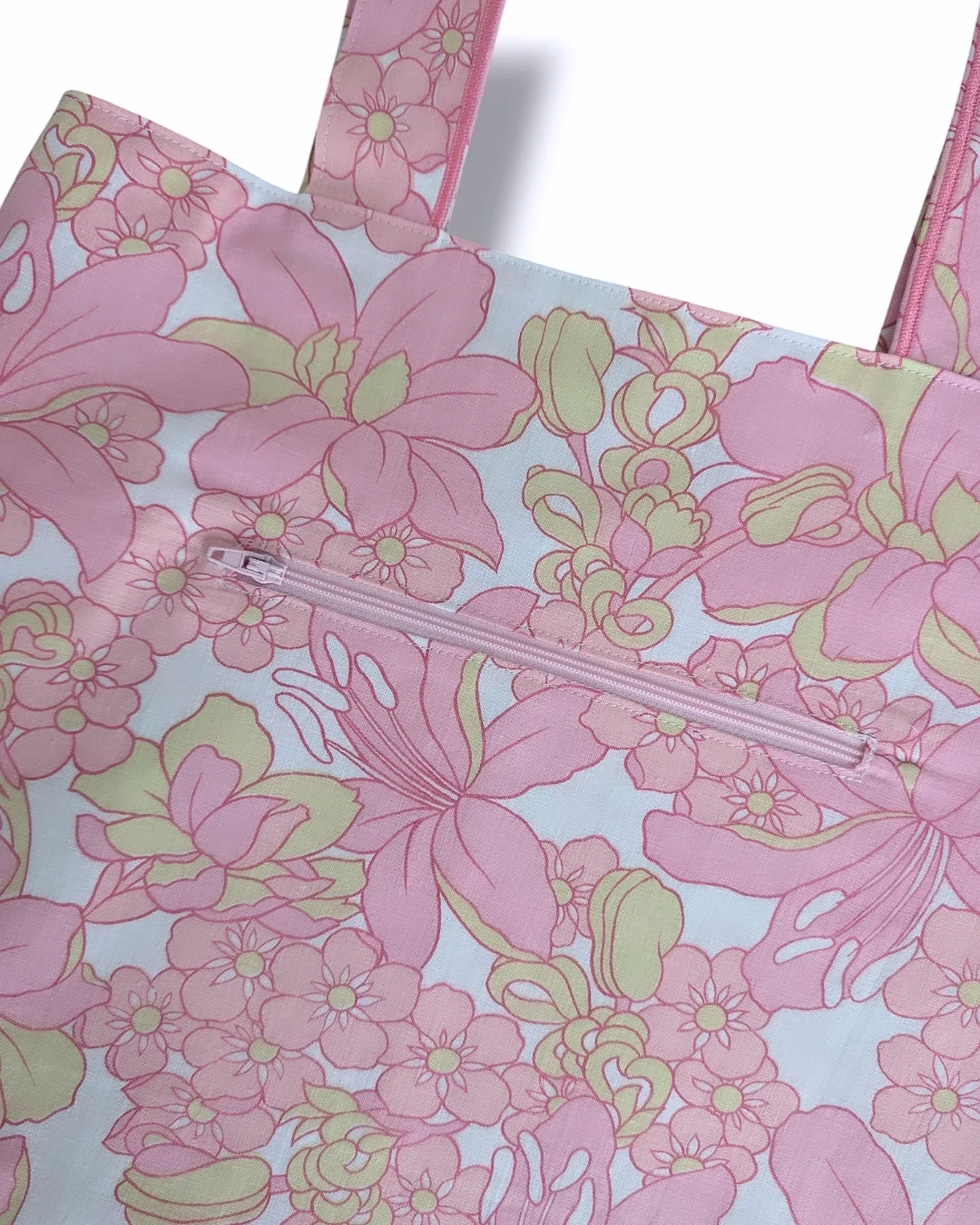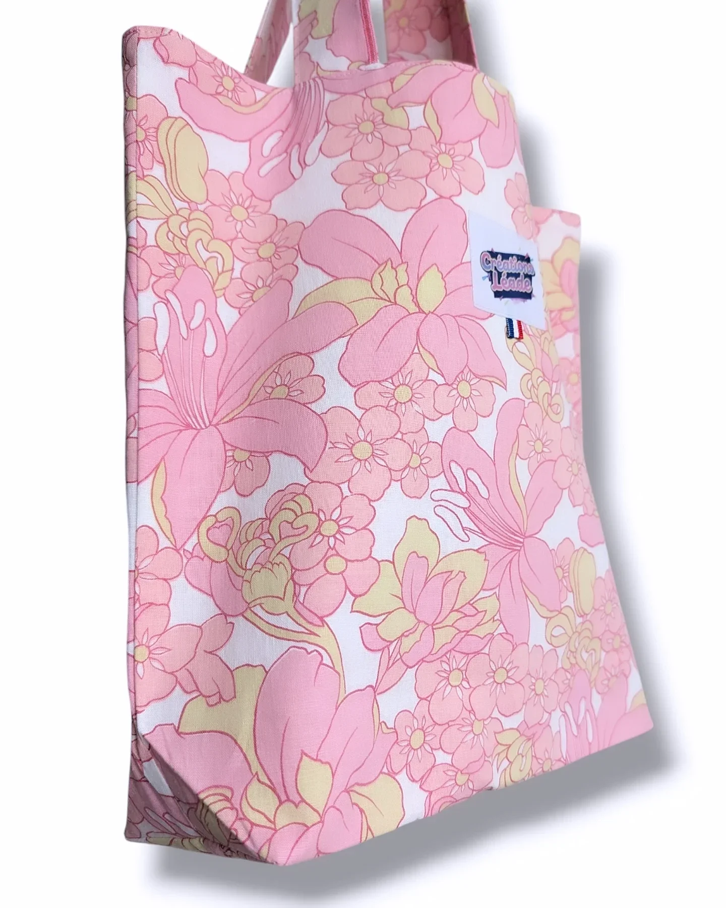Confectionné dans une ancienne taie d'oreiller vintage 100% coton fabriquée en France 🇫🇷 aux magnifique motifs fleuris dans les tons roses.
